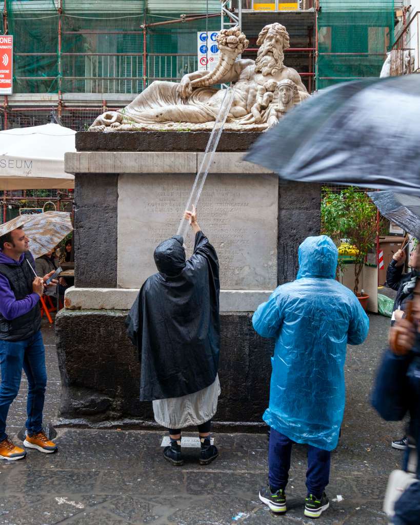 Le statue votive, o comunque quelle legate in qualche modo a pratiche religiose, partecipano performativamente alla vita, non solo incidentalmente, come nel caso dei monumenti esposti al cielo, ma strutturalmente: sono oggetto di relazioni (con gli elementi e con gli uomini) attraverso forme rituali di mutazione transitoria. Iside infatti era, lavata, vestita e adornata di oggetti di valore, portata in processione, circondata da offerte, come nel caso del Nilo, tra le cui pieghe sono stati ritrovati “denti, biglietti del lotto, frasi votive” (Lo sguardo del Nilo: storia e recupero del Corpo di Napoli, Colonnese Editore), durante il restauro del 1993, o come le capuzzelle della chiesa di Santa Maria delle Anime di Purgatorio ad Arco.